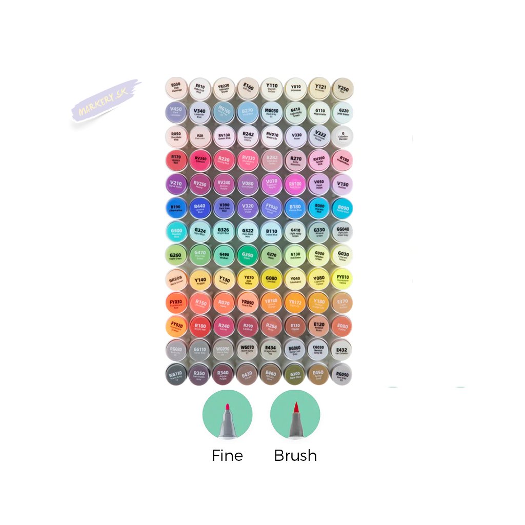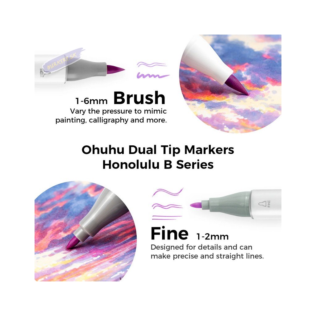 Obojstranné popisovače OHUHU na báze alkoholu s tenkým pevným hrotom na jednej strane a štetcovým hrotom na strane druhej.