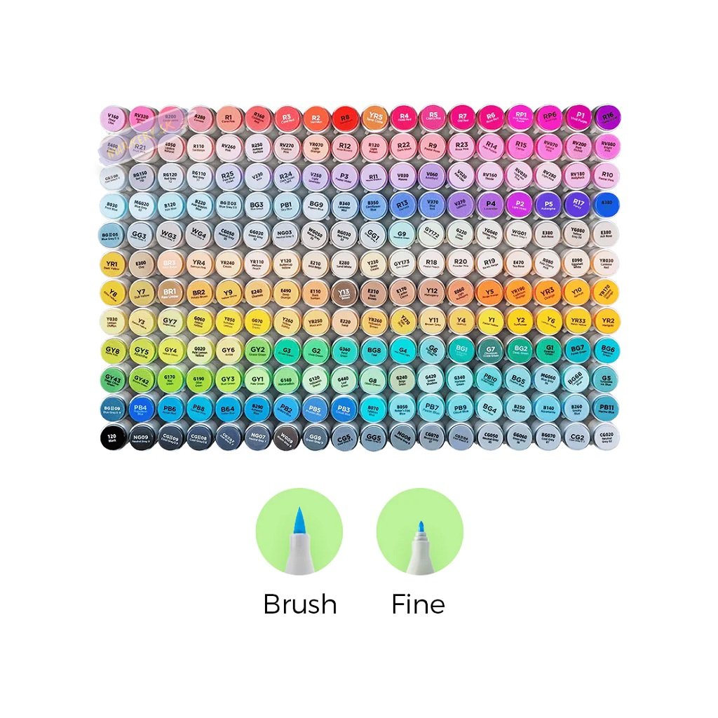 Obojstranné popisovače OHUHU na báze alkoholu s tenkým pevným hrotom na jednej strane a štetcovým hrotom na strane druhej.