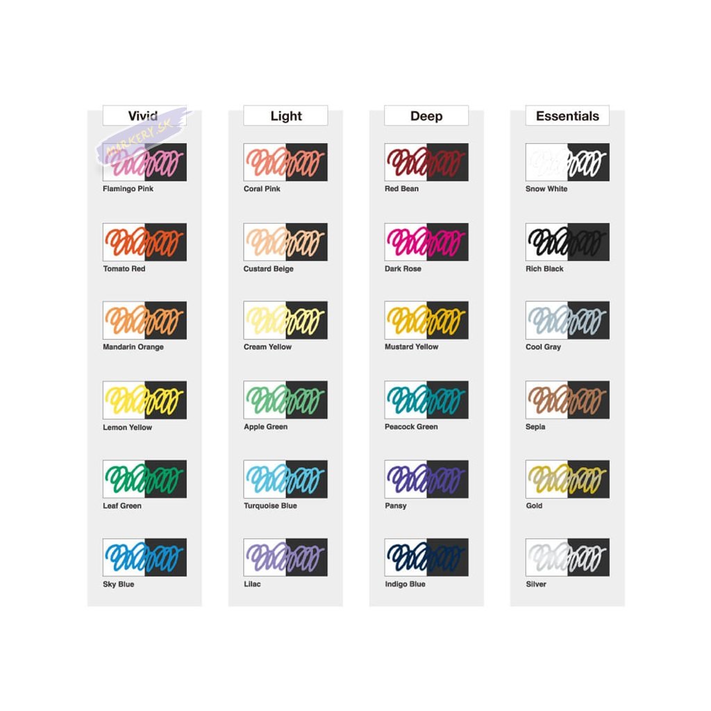 Akrylové fixky COPIC Acrea ponúka výber pigmentových popisovačov s nepriehľadnými odtieňmi od snehovo bielej cez pastelové farby až po lesklé metalické odtiene. Všestrannosť otvára nekonečné kreatívne možnosti, pretože môžete pracovať na rôznych materiáloch, ako je papier, sklo, kameň, drevo, železo, plasty a tkaniny. Netoxický atrament bez zápachu je po zaschnutí vodeodolný a svetlostály. Perfektne fungujú aj na umeleckých dielach vytvorených fixkami na alkoholovej báze. Elegantný matný dizajn umožňuje ľahké uchopenie, zatiaľ čo tenký hrot je optimalizovaný pre zložité detaily a poskytuje plynulý tok atramentu na bezproblémové kreslenie alebo písanie.