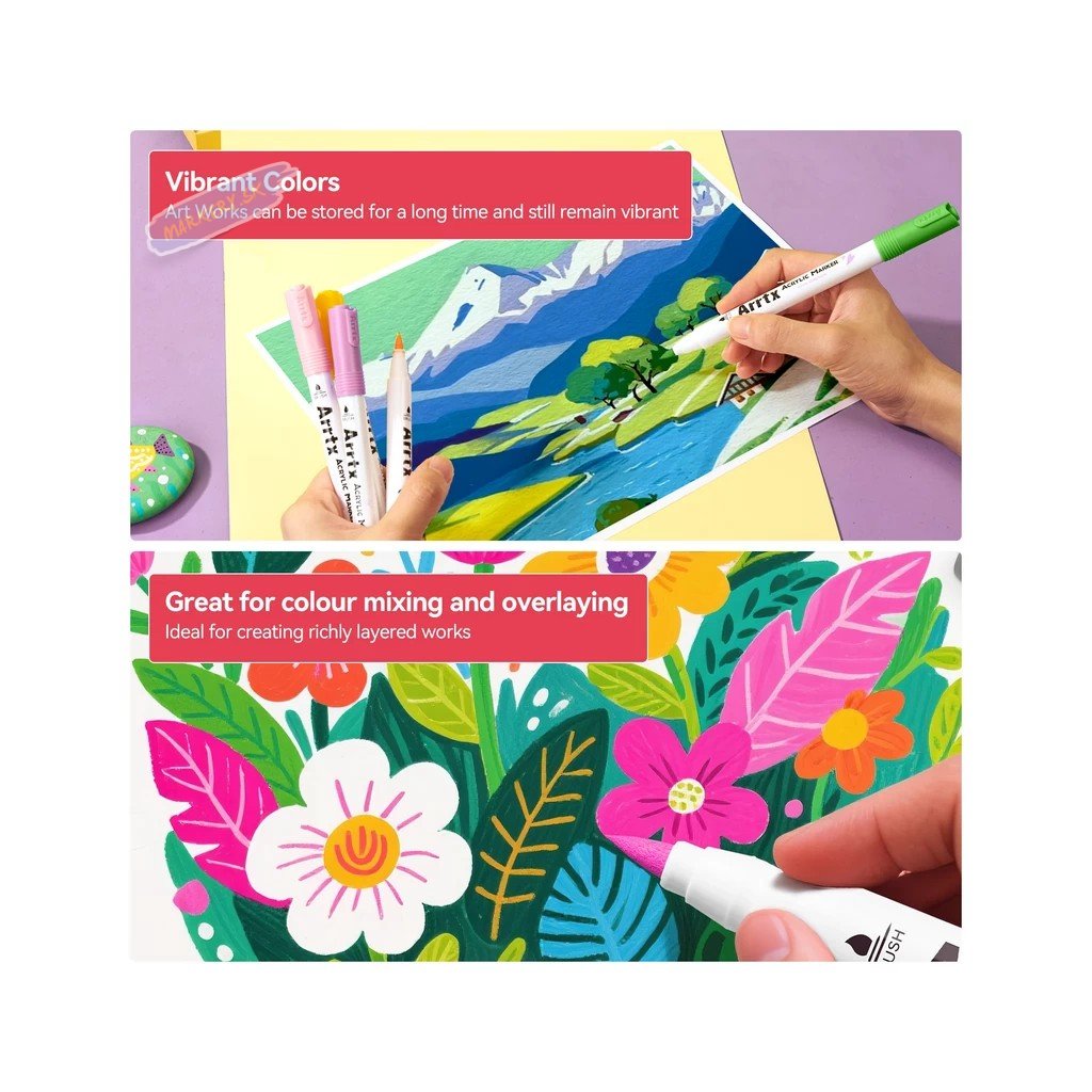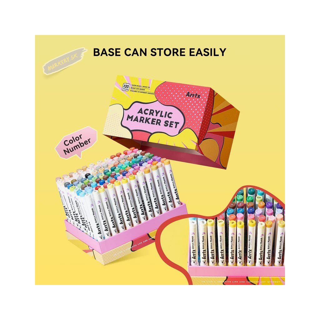 Akrylové popisovače ARRTX v 120 žiarivých farebných odtieňoch. Fix má flexibilný štetcový hrot vhodný na detaily aj väčšie plochy alebo na kaligrafiu. Akrylové popisovače sú balené v dizajnovej krabičke, aby všetko zostalo čisté a dobre organizované. Ideálny darček pre deti, študentov, umelcov aj pre dospelých.
