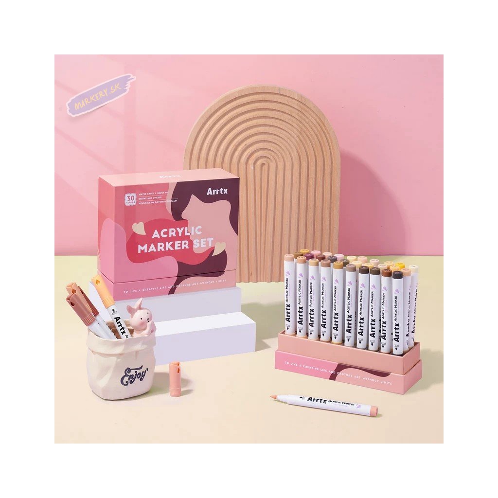 Akrylové popisovače ARRTX v 30 žiarivých farebných odtieňoch. Fix má flexibilný štetcový hrot vhodný na detaily aj väčšie plochy alebo na kaligrafiu. Akrylové popisovače sú balené v dizajnovej krabičke, aby všetko zostalo čisté a dobre organizované. Ideálny darček pre deti, študentov, umelcov aj pre dospelých.