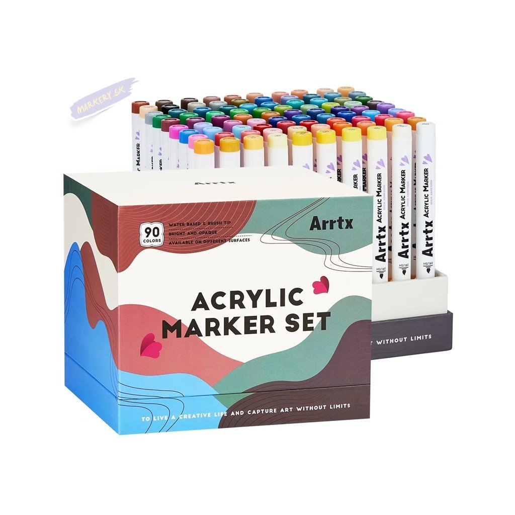 Akrylové popisovače ARRTX v 90 žiarivých farebných odtieňoch. Fix má flexibilný štetcový hrot vhodný na detaily aj väčšie plochy alebo na kaligrafiu. Akrylové popisovače sú balené v dizajnovej krabičke, aby všetko zostalo čisté a dobre organizované. Ideálny darček pre deti, študentov, umelcov aj pre dospelých.