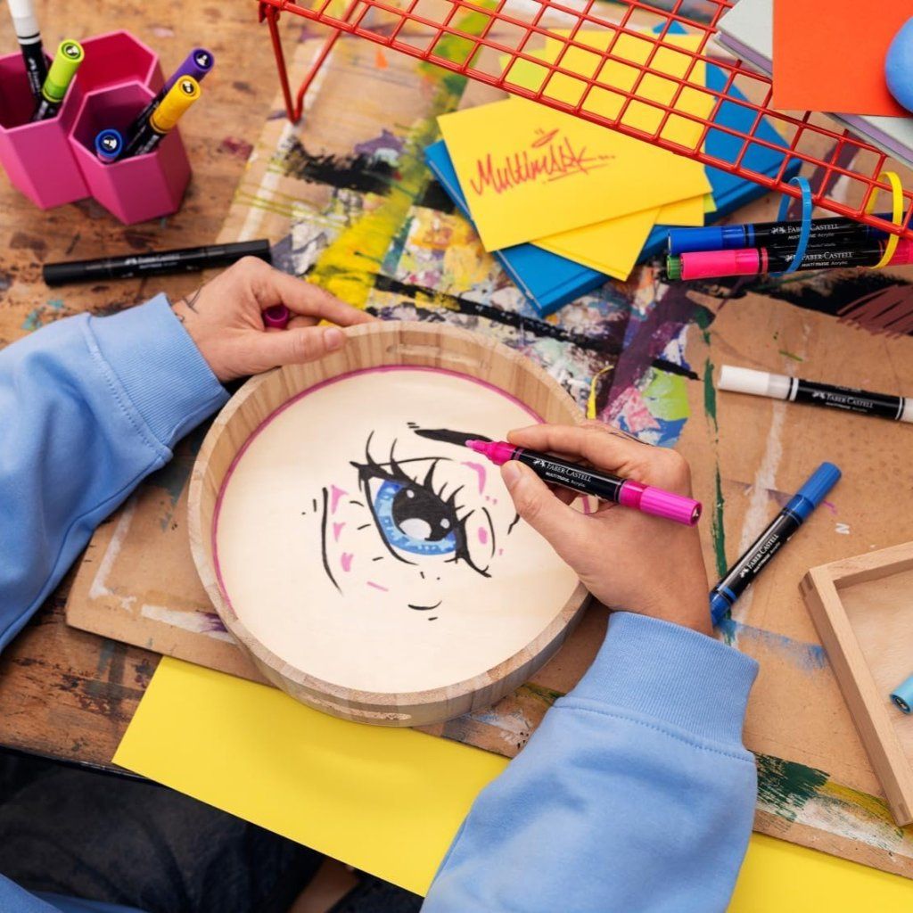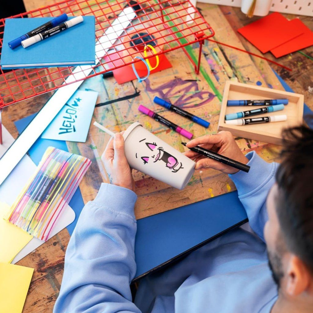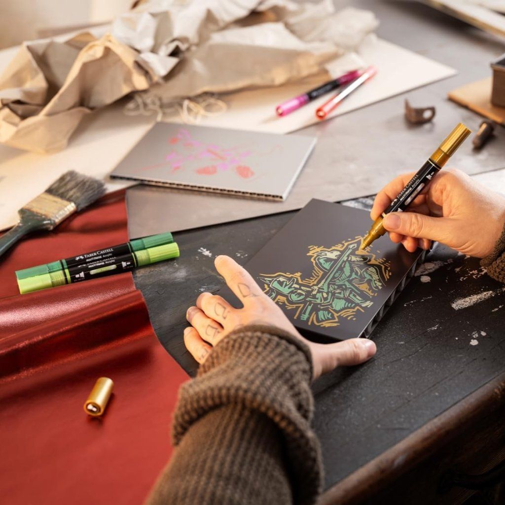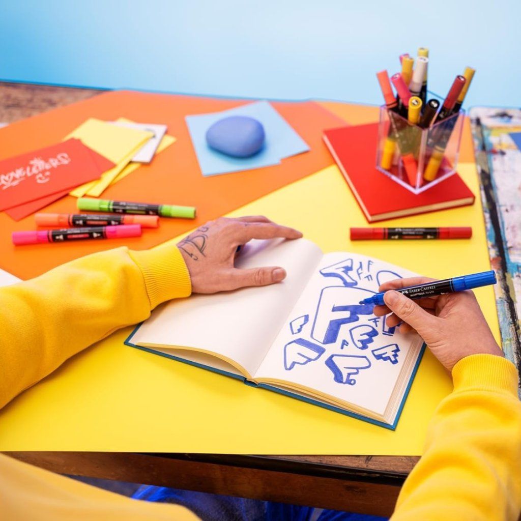 Obojstranný akrylový popisovač FABER-CASTELL Multimark s dvoma hrotmi: tenký pevný pre detailnú prácu a silnejší okrúhly pre výrazné ťahy. Ideálny popisovač na použitie na takmer všetky povrchy, ako je papier, kov, drevo, keramika, sklo, kameň a textil. Vhodný na savé aj nesavé materiály. Vymeniteľné hroty umožňujú ľahkú údržbu a dlhodobo presné kreslenie.