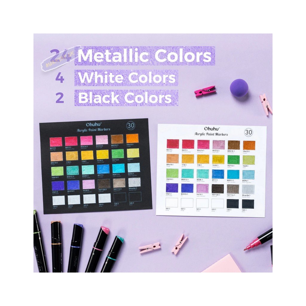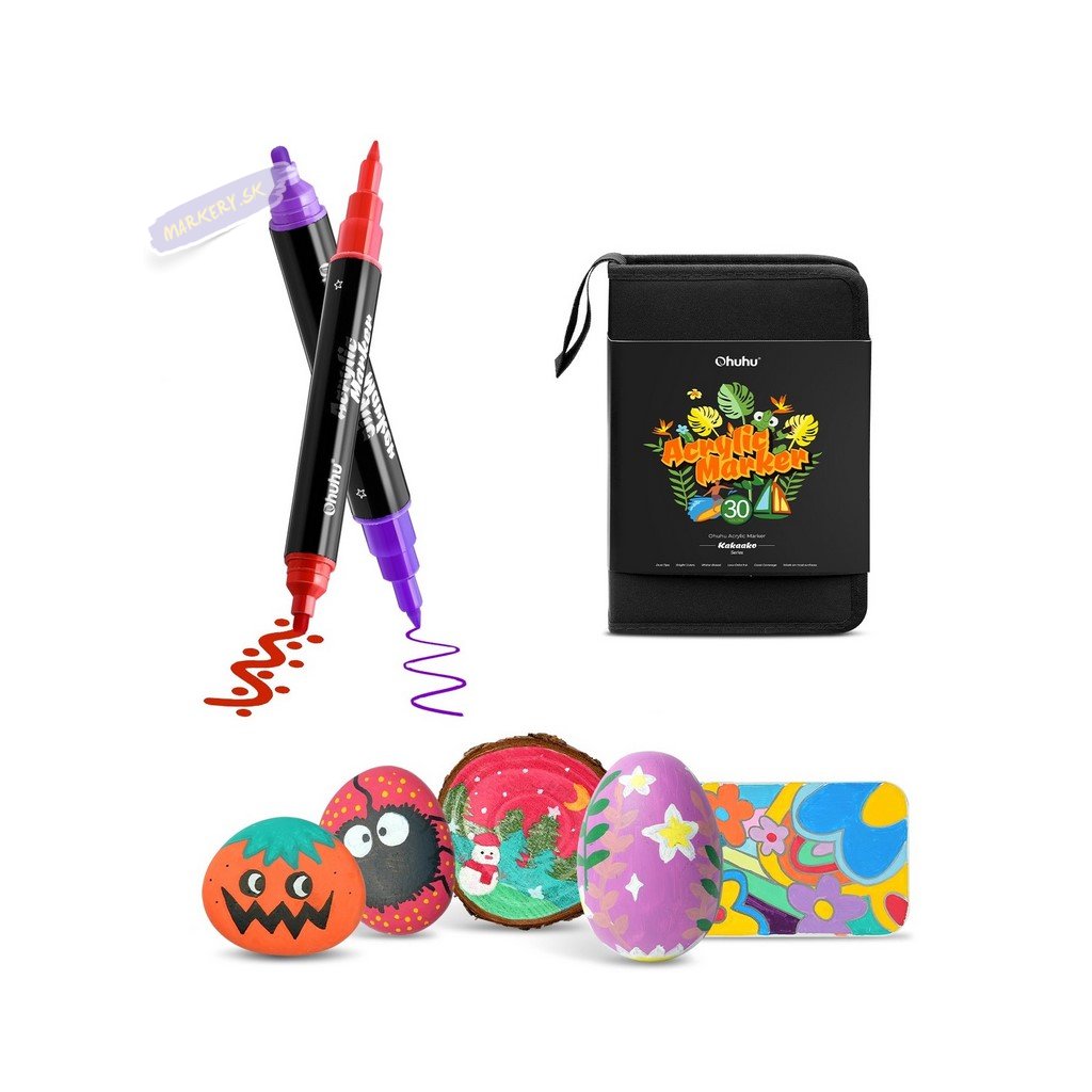 Akrylové fixky OHUHU Acrylic, 30ks metalické v peračníku