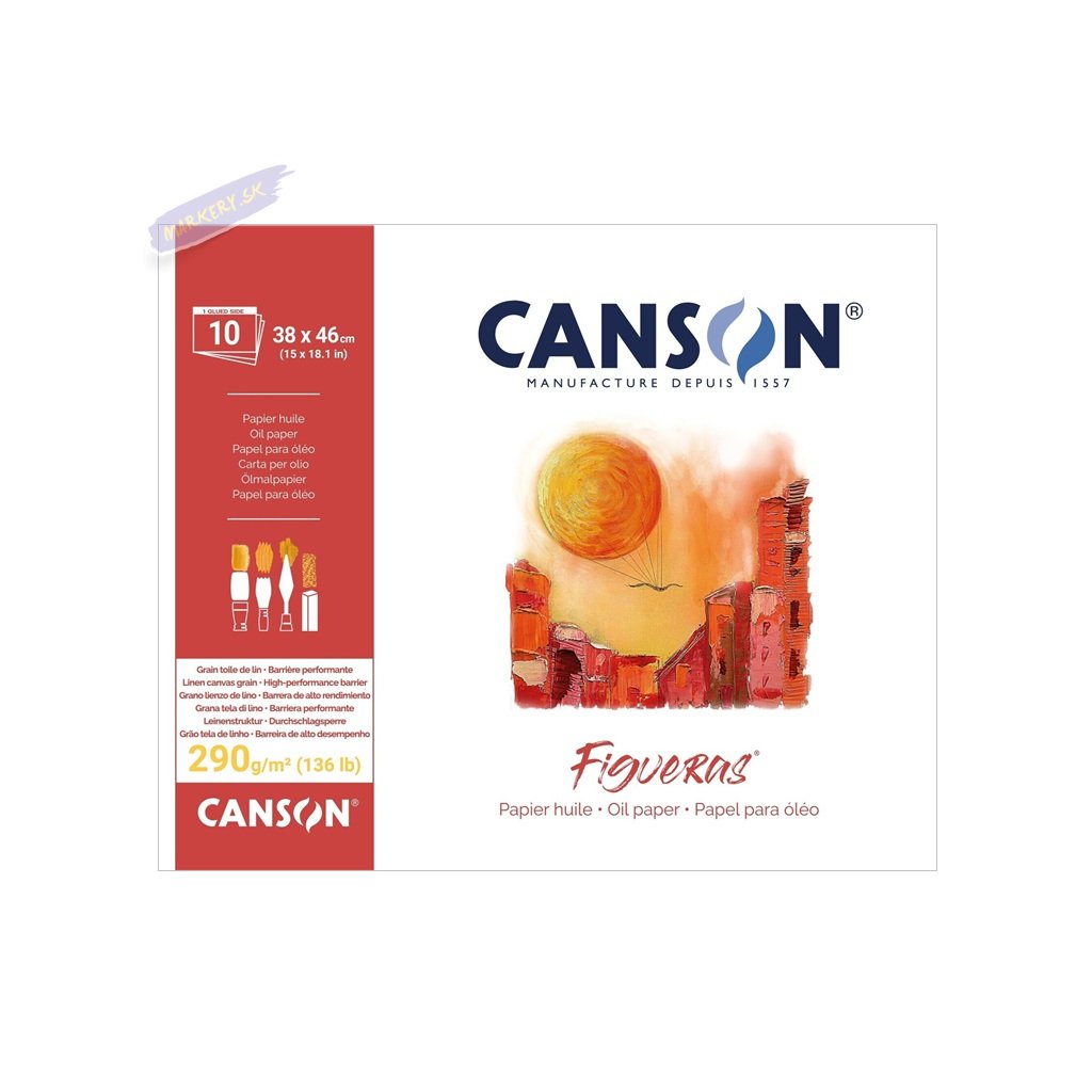 CANSON Figueras je odolný papier vysokej kvality špeciálne určený pre olejomaľbu. Výborne absorbuje olej, spojivá a vodu, zároveň je vďaka povrchovému náteru zaistená vynikajúca odolnosť. Je bez povlaku s prírodnou textúrou podobnú plátnu. Tento papier bez acidov ponúka vynikajúcu životnosť a môže byť uchovávaný po dlhú dobu. Je ľahký a pripravený na použitie, ideálny na cesty, na doma, vo voľnej prírode alebo vo vašom štúdiu. Je tiež vhodný pre mastný pastel a akryl, so značnými pastóznymi účinkami.