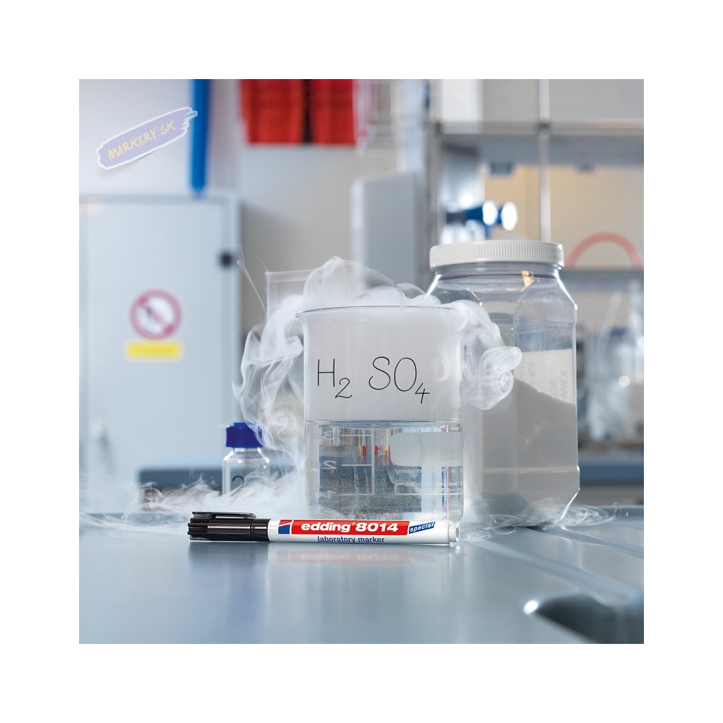 Laboratórny popisovač Edding vyvinutý na jemné a presné značenie hladkých a priehľadných povrchov. Ideálne je pre všetky laboratórne sklá, reakčné nádoby, Petriho a laboratórne misky. Atrament je mimoriadne rýchloschnúci, svetlostály, vodeodolný a extrémne oteru odolný. Permanentný atrament na báze alkoholu je odolný aj proti mrazu a žiaru. Odolá teplotám od -183 °C (v tekutom dusíku) do +500 °C (na hliníku).