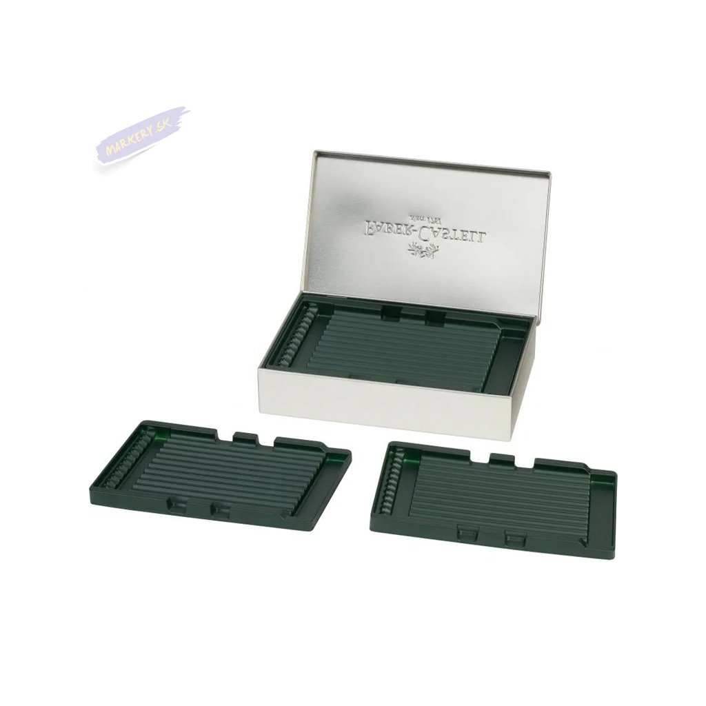 Prázdna kovová krabička na 36ks pasteliek a ceruziek, napríklad ideálna pre umelecké farebné ceruzky Polychromos, umelecké akvarelové ceruzky Albrecht Dürer, ceruzky Castell 9000, grafitové akvarelové ceruzky, grafitové ceruzky Pitt Pure, ceruzky Pitt.