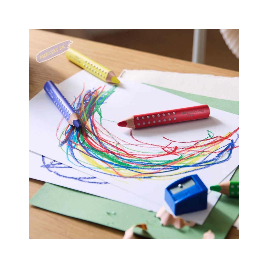 Farebná pastelka s mäkkou XXL tuhou špeciálne vyvinutá pre malé detské ručičky od 2 rokov. Ergonomický trojuholníkový tvar podporuje a zrýchľuje prvý úchop pastelky celou dlaňou až po úchop tromi prstami a zároveň zabraňuje skotúľaniu pasteliek zo stola.