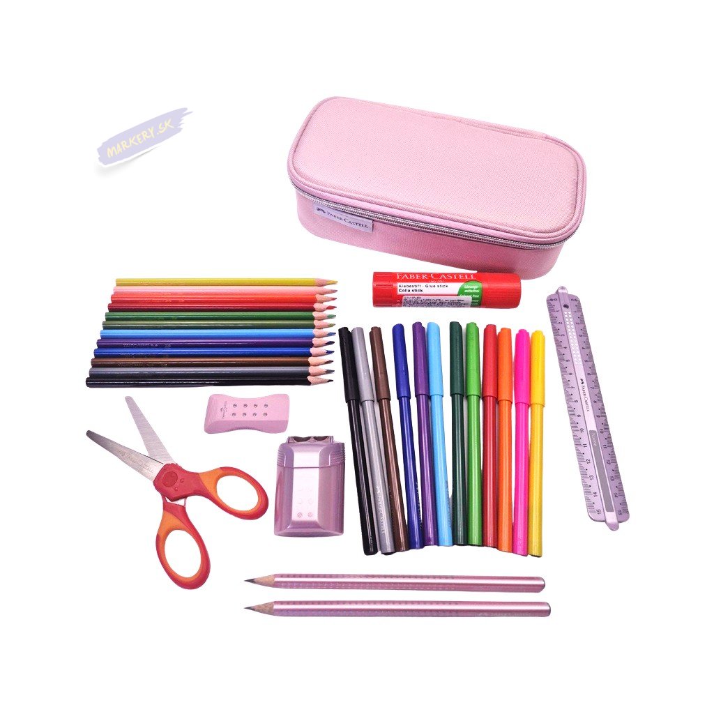 FABER-CASTELL školská sada pre dievčatá v peračníku, 24ks fix a pasteliek a 8ks príslušenstva