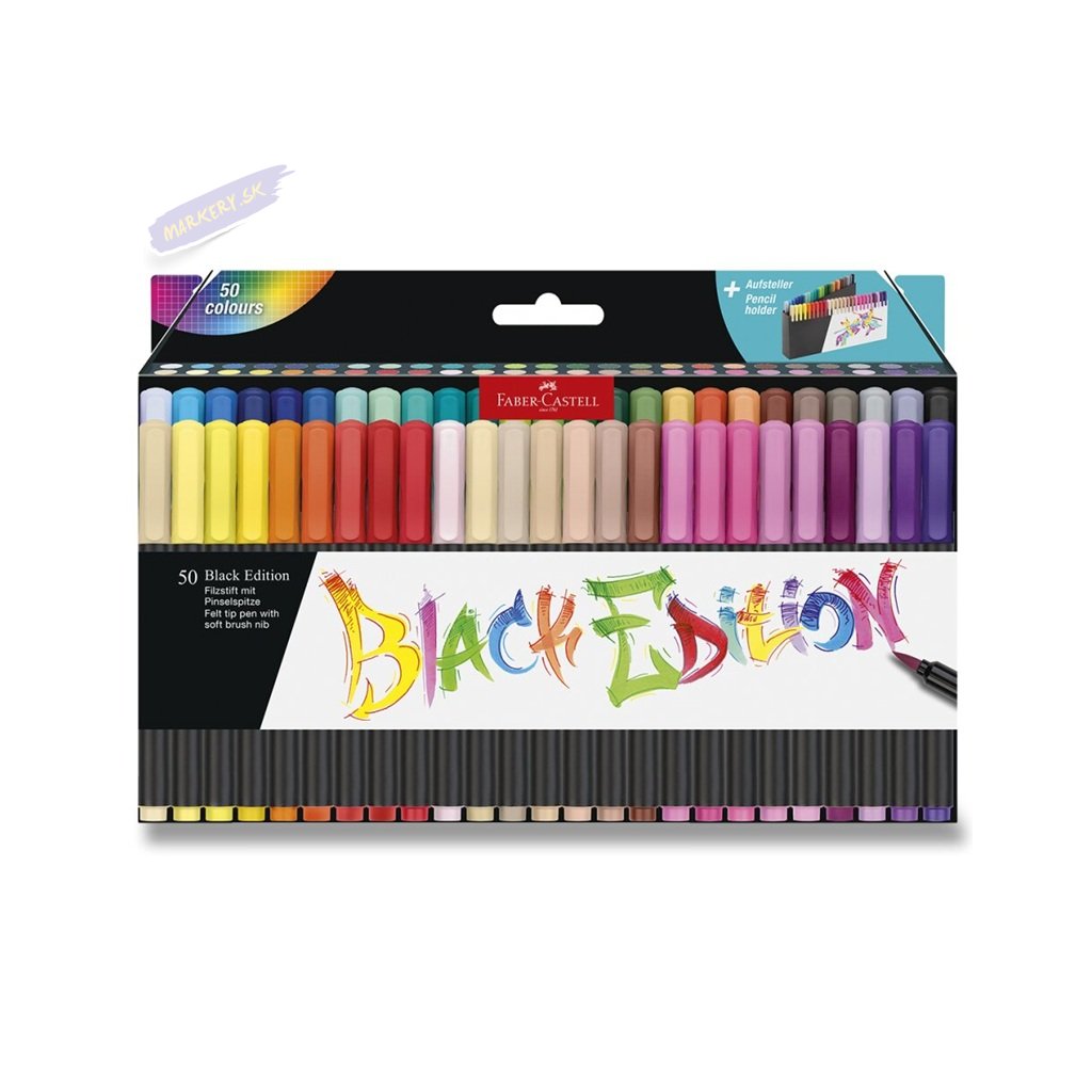 FABER-CASTELL štetcové fixky Black Edition, set 50ks v stojančeku