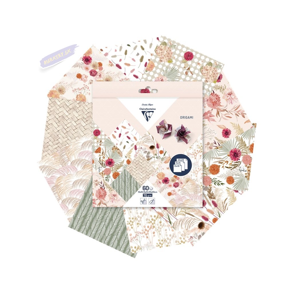 Farebné papiere CLAIREFONTAINE Origami Dried Flowers, mix veľkostí, 70g, 60 listov