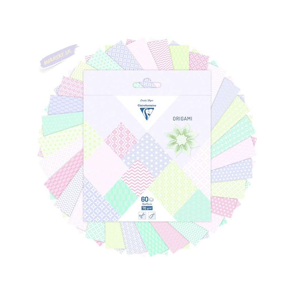 Sada papierov Clairefontaine Origami je ideálna pre známe japonské umenie skladania papiera. Zábavné a prístupné všetkým, od začiatočníkov až po pokročilých tvorcov. Jednotlivé listy sú so vzorom na prednej strane a hladké na zadnej strane.