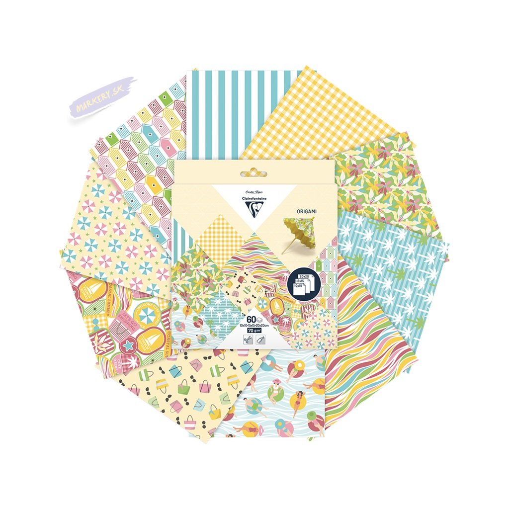 Farebné papiere CLAIREFONTAINE Origami Riviera, mix veľkostí, 70g, 60 listov