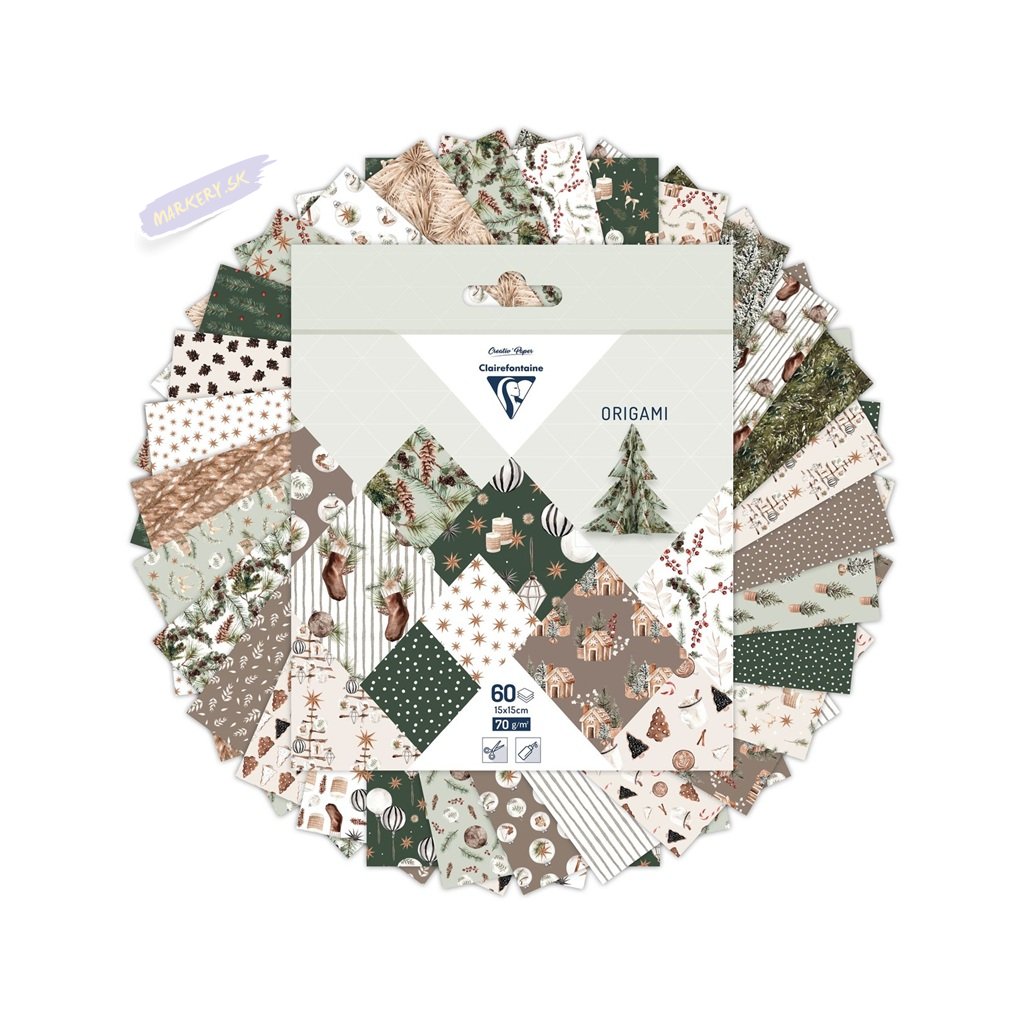 Farebné papiere CLAIREFONTAINE Origami Vianoce, 15x15cm, 70g, 60 listov