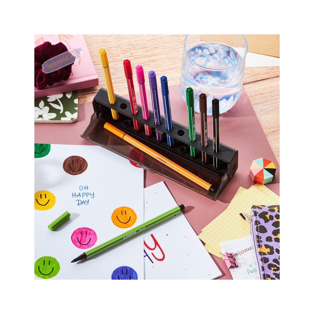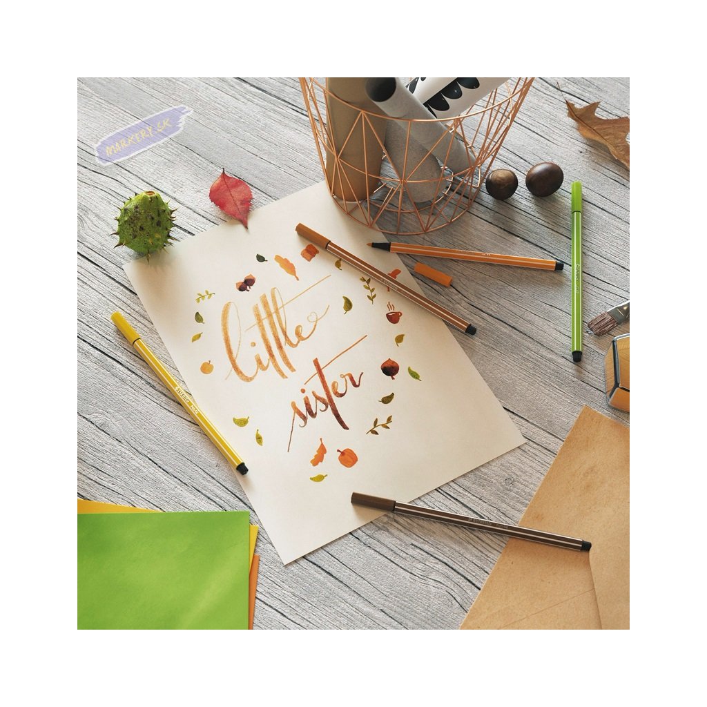 Vláknová fixka STABILO Pen 68 bude vaším novým najlepším farebným priateľom. Vodou rozmývateľná náplň na vodnej báze bez zápachu má veľmi jasné a žiarivé farby. Začnite teraz vyfarbovať s rozsiahlou škálou 65 farieb vrátane 6 neónových. Fix ponúka robustný Medium hrot (šírka stopy cca 1mm) na rovnomerné nanášanie náplne, ktorý je možné využiť pre silné línie a veľké plochy. Otvorený vydrží až 24 hodín a nevyschne.