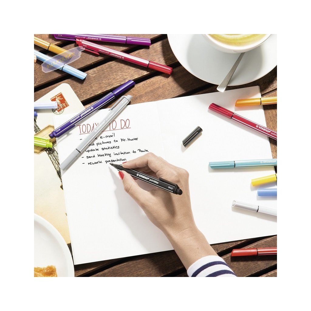 STABILO Point Max pre bezkonkurenčný zážitok pri písaní a jasne viditeľné línie. S robustným nylonovým hrotom s priemerom 0,8mm vám táto fixka ponúka tú najlepšiu kvalitu. Je ideálny na každodenné písanie či kreslenie, či už píšete list, rýchle poznámky alebo rysujete.