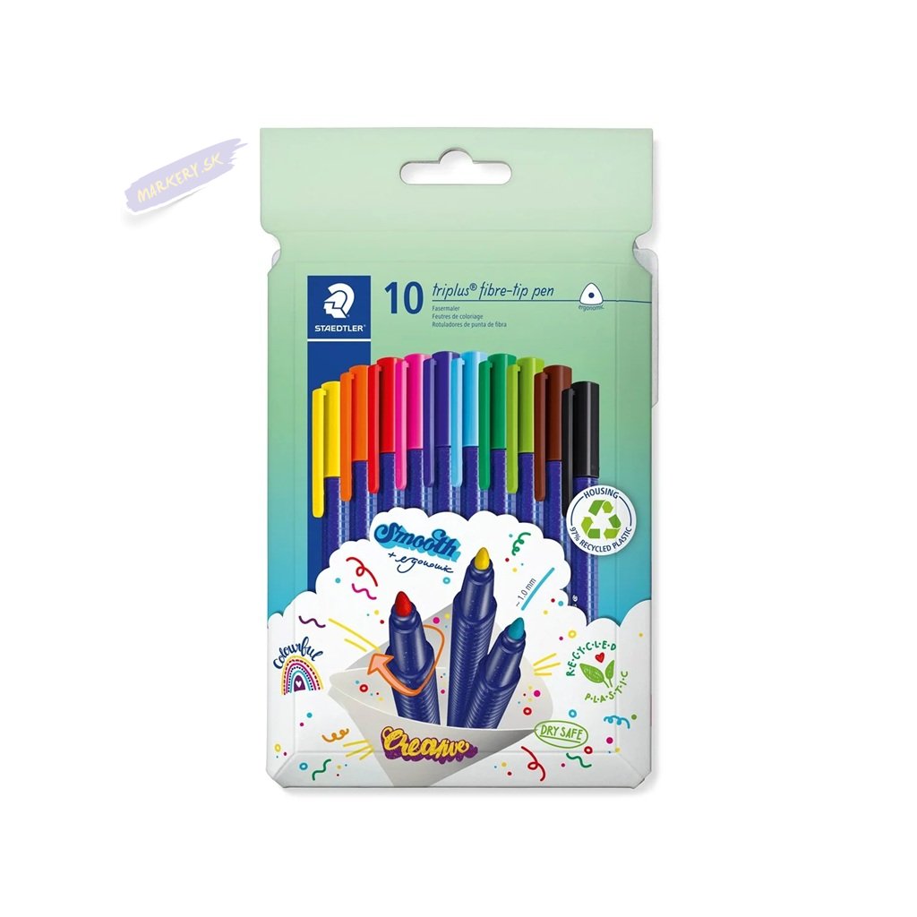 Fixky STAEDTLER majú ergonomický trojhranný tvar pre pohodlné držanie. Fixky majú atrament na vodnej báze a bez viečka vydržia aj niekoľko dní. Guľatý hrot je veľmi odolný a farba je vyprateľná z väčšiny textílií.