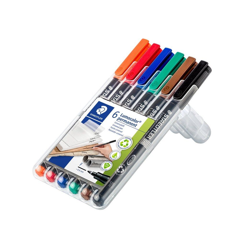 Súprava univerzálnych permanentných popisovačov od značky STAEDTLER pre väčšinu povrchov. Atrament je svetlostály, vodeodolný a odolný proti rozmazaniu. Nevysychajúci, plniteľný, rýchloschnúci, vhodný aj pre ľavákov.