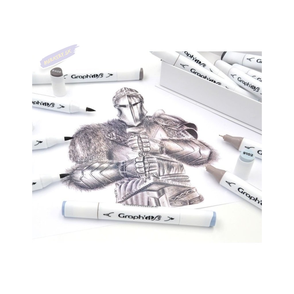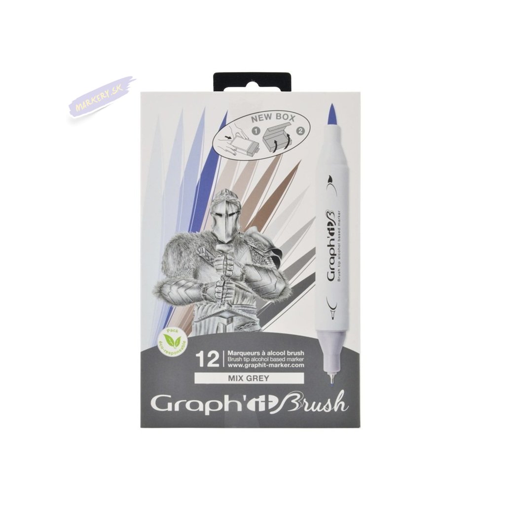 Liehové fixky GRAPH'IT obojstranné Brush & Chisel, 12ks Mix Greys