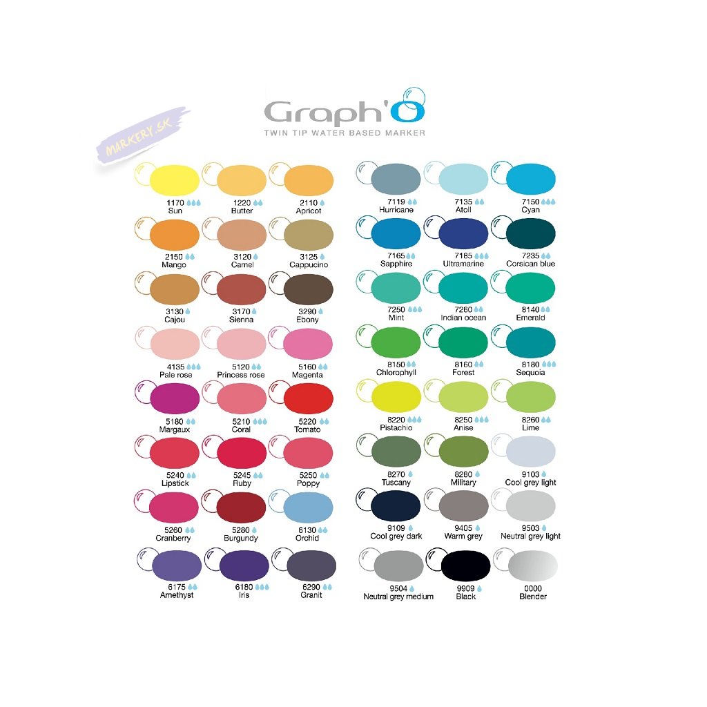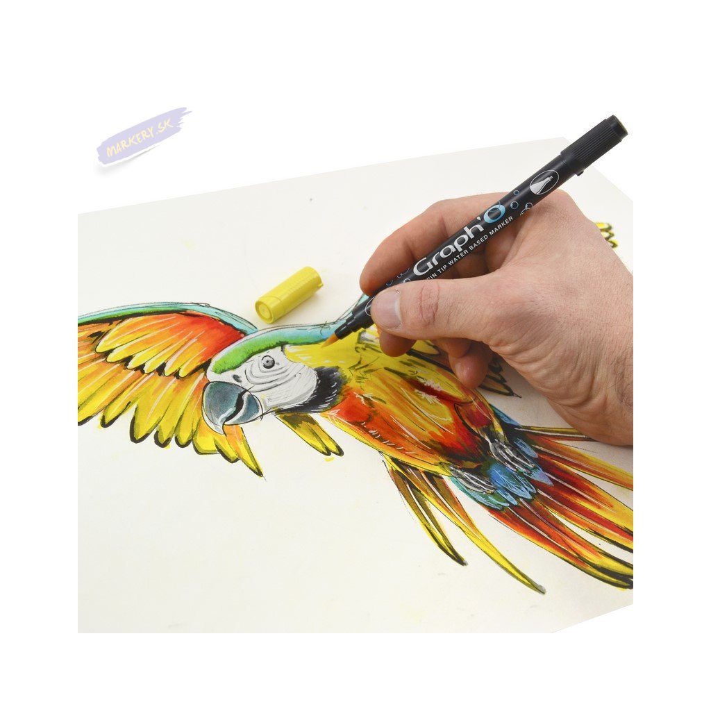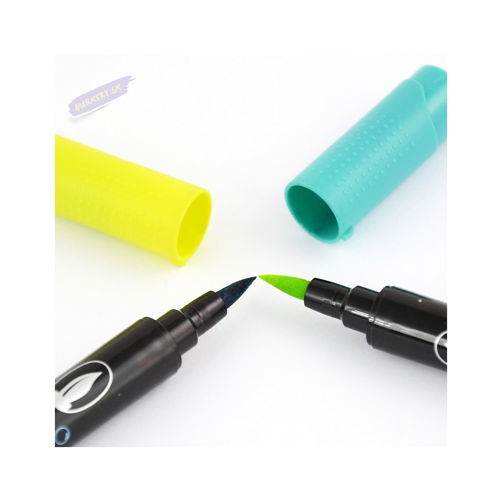 Obojstranný popisovač na vodnej báze: mäkký a flexibilný štetcový hrot a veľmi tenký hrot pre detailné linky. Atrament je ľahko priesvitný a bez zápachu. Je rozpustný vodou pre ľahšie blendovanie a efekt vodových farieb.