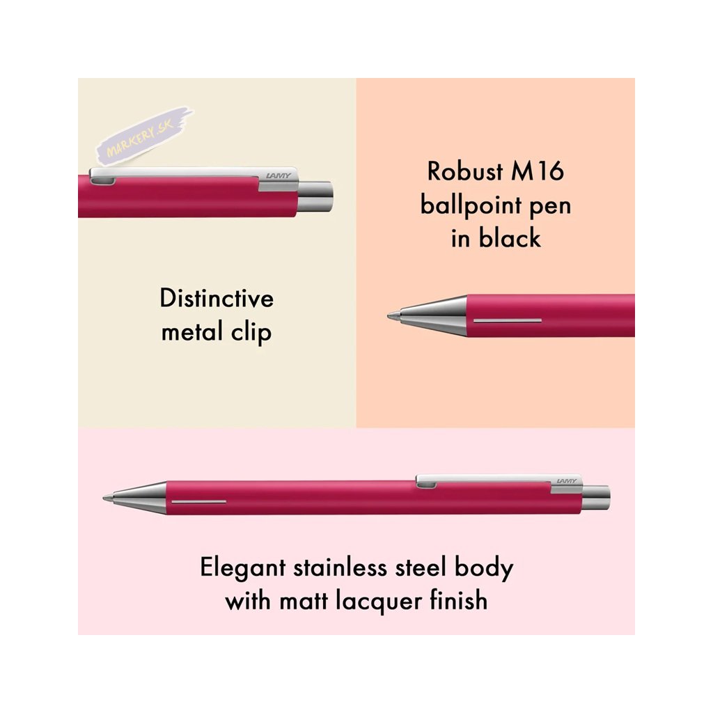 Guličkové pero LAMY Econ má telo z nerezovej ocele s matnou povrchovou úpravou. V kombinácii s doplnkami z nerezovej ocele.