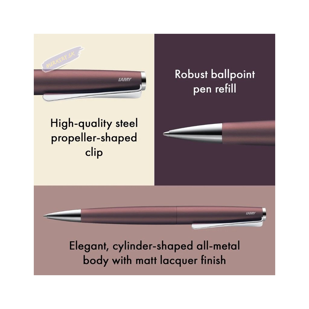Guličkové pero LAMY Studio Orion Matt je elegantná ukážka, kedy sa design blíži umeniu. Úplne nová interpretácia a výnimočne príťažlivé tvary inšpirované modernými výtvarnými formami. Pero má matne hnedočerveno lakované telo z nerezovej ocele. Vysoko leštený pochrómovaný úchop a klip z nerezovej ocele v originálnom tvare vrtule.