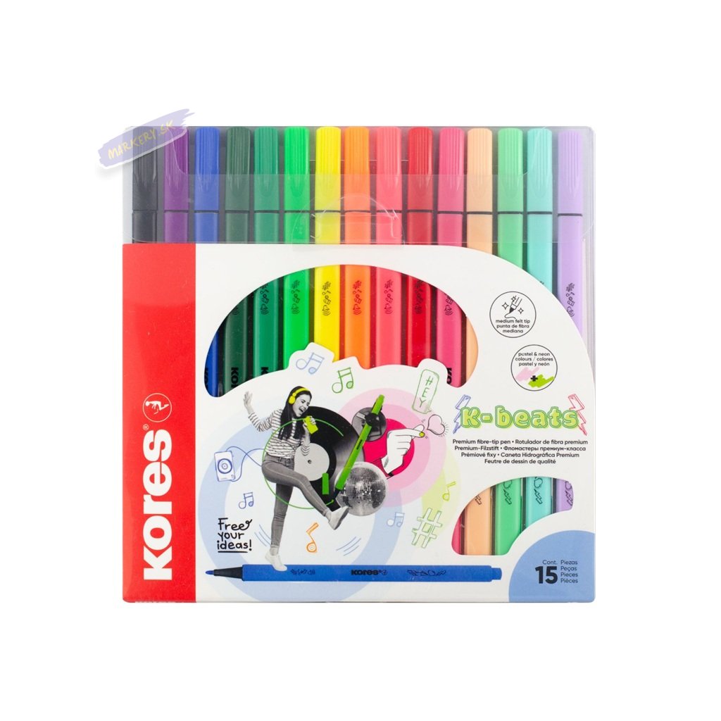 - Sada 15 farieb obsahuje 4 pastelové a 3 neónové farby
