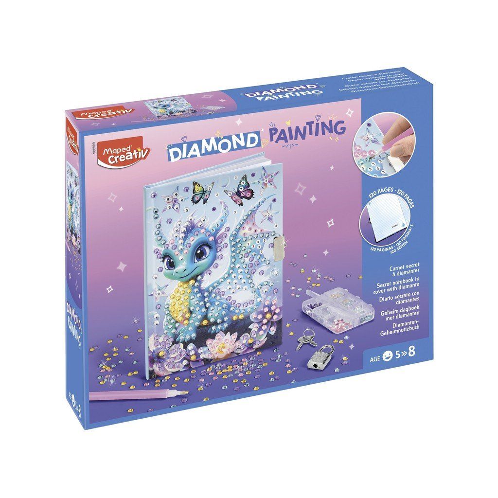 Kreatívna sada Maped Creativ Diamond Painting umožňuje deťom vytvoriť si vlastný trblietavý tajný denník podľa svojej fantázie. Pomocou viac ako 500 diamantov si sami zvolia, kam jednotlivé kamienky umiestnia, a vytvoria tak originálny zápisník na písanie aj kreslenie. Výsledkom je jedinečný denník, ktorý si môžu plne prispôsobiť a uchovať svoje tajomstvá.