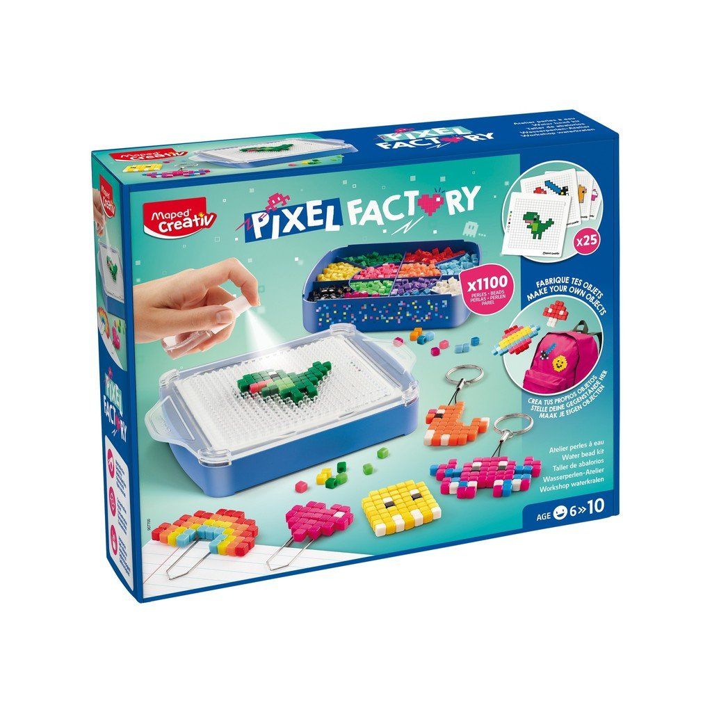 Sada Maped Creativ Pixel Factory (vodné korálky) pomáha rozvíjať jemnú motoriku a koncentráciu dieťaťa. Pomocou korálikov a predlôh si deti vytvoria jedinečné doplnky. Motívy majú rôzne úrovne obtiažnosti, takže si ich deti vyberajú podľa svojej šikovnosti. Akonáhle si osvoja techniku, môžu začať vymýšľať aj vlastné výtvory. Po dokončení stačí korálky postriekať vodou a počkať 30 minút. Po zaschnutí je možné dozdobiť výtvory pomocou špeciálnych korálikov a rôznych doplnkov.
