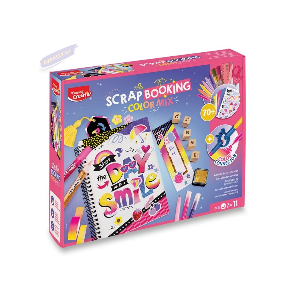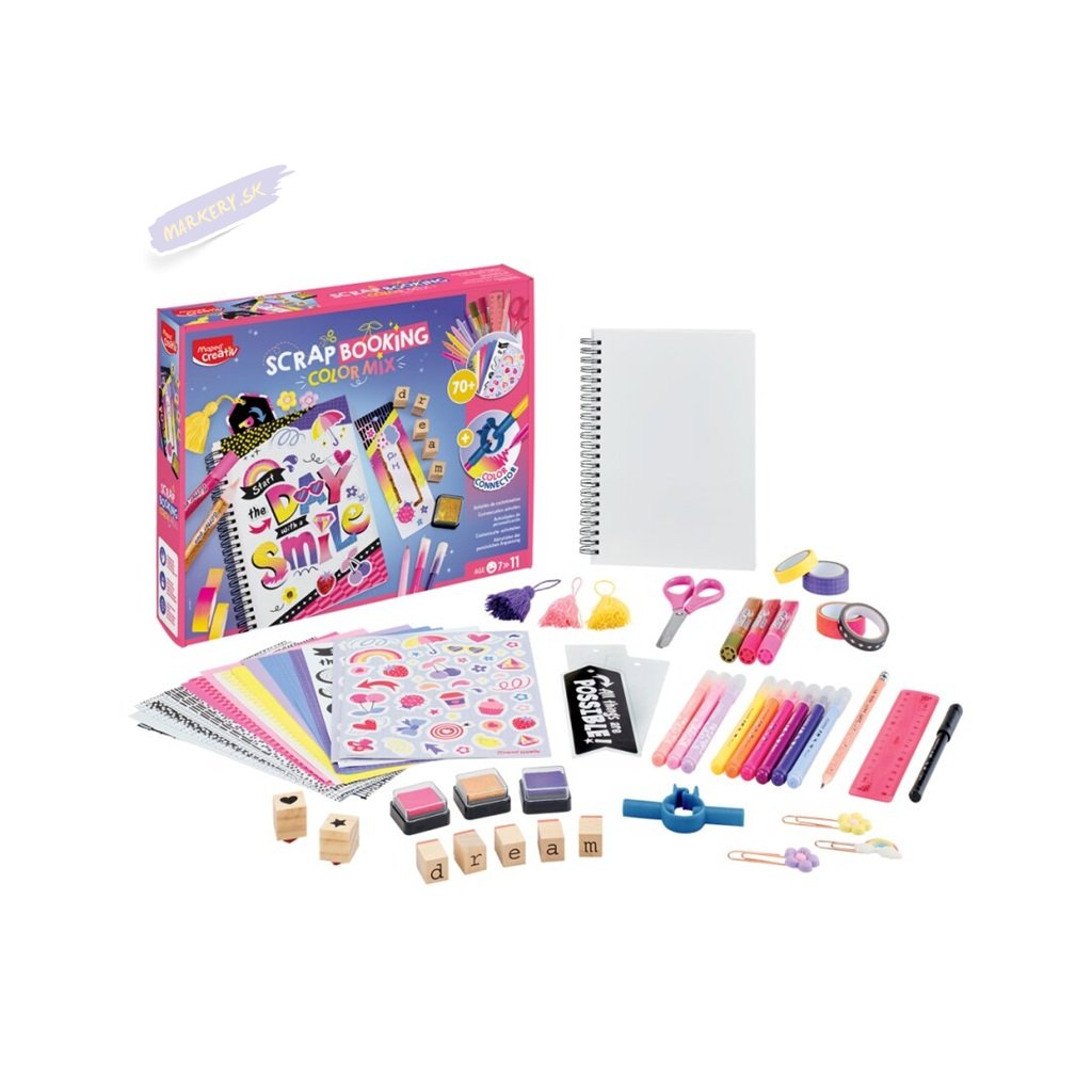 Kreatívna sada MAPED Creativ Scrapbooking Color Mix, s ktorou si vďaka najrôznejším doplnkom vytvoríte svoj originálny blok. Vhodné pre deti od 7 rokov.