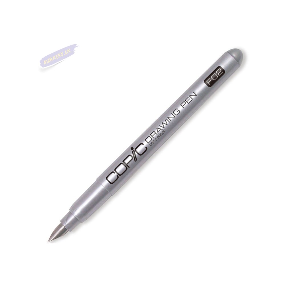 Kresliace pero COPIC s čiernym atramentom pre kresby, skice a dynamické šrafovanie. Zmenou tlaku na hrot je možné vytvoriť rôzne šírky ťahu. Pero je plastové bez možnosti doplnenia.
