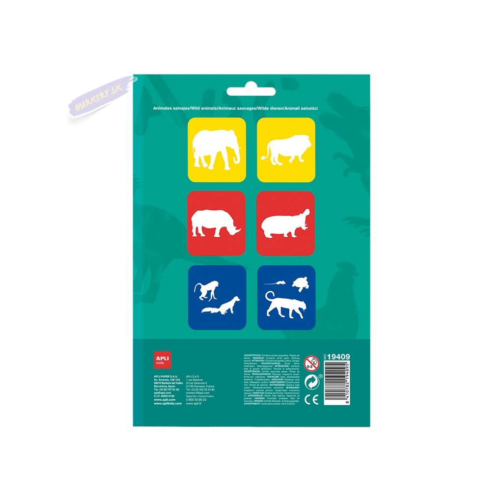 Sada šablón s najznámejšími typmi zvierat pre nekonečné možnosti kreslenia, maľovania a tvorenia. Vyrobená z kvalitného a odolného polypropylénu, ktorý je odolný a ľahko umývateľný. Šablóny umožňujú kresliť vnútorné aj vonkajšie obrysy, ale aj maľovať alebo tlačiť pomocou hubiek. Podpora a rozvoj jemnej motoriky dieťaťa. Rozmer šablóny: 15,3 × 14,3 cm.