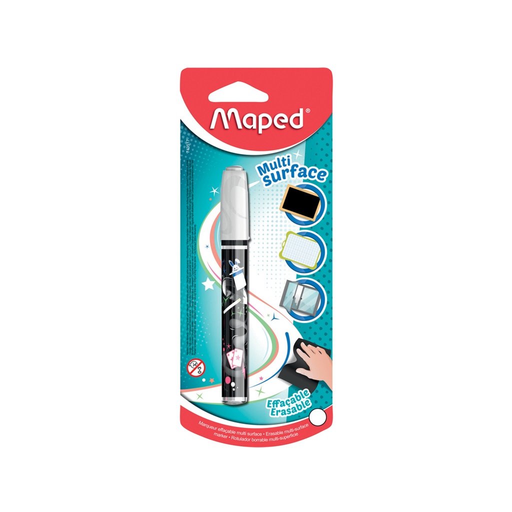 Kriedový viacpovrchový popisovač MAPED vhodný nielen na klasické tabule, ale aj na sklo, keramické tabule alebo zrkadlá. Stierať lený vlhkou handričkou. Popisovač má odnímateľný, obojstranný hrot, ktorý je možné v prípade vyschnutia opláchnuť teplou vodou.