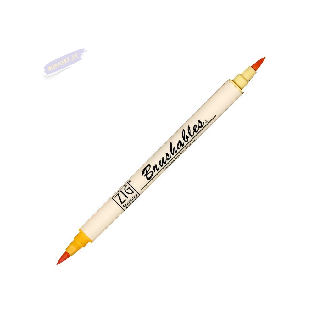 KURETAKE ZIG Brushables sú štetcové dvojfarebné fixky skvelé na vytváranie viactónových efektov prelínania. 24 farebných odtieňov systému MEMORY na jednom konci a na druhom konci mierne sfarbené rovnakou farbou.