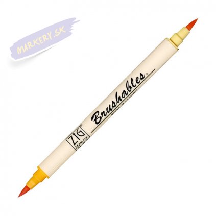 KURETAKE ZIG Brushables sú štetcové dvojfarebné fixky skvelé na vytváranie viactónových efektov prelínania. 24 farebných odtieňov systému MEMORY na jednom konci a na druhom konci mierne sfarbené rovnakou farbou.