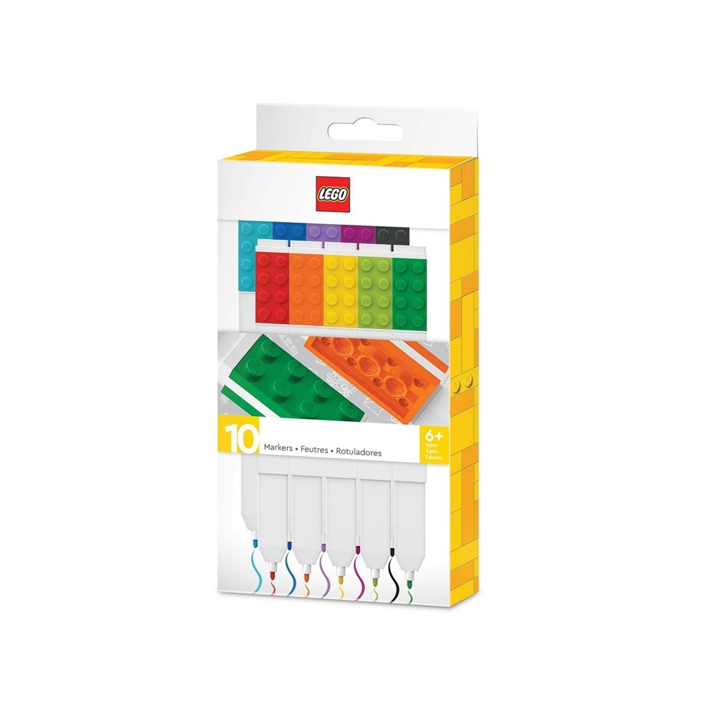 LEGO fixky rôznych farieb (mix 10 farieb). Súčasťou fixov sú 2 LEGO doštičky na spojenie napr. s LEGO puzdrom, minifigúrkou, iným perom alebo na nacvaknutie na LEGO pravítko.