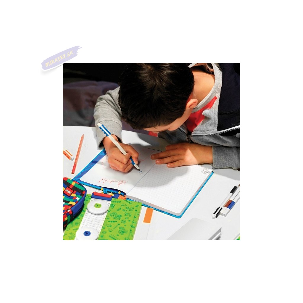 Štýlové LEGO gélové pero nesmie chýbať na vašom stole. Súčasťou pera je LEGO doštička, pomocou ktorej môžete pero pricvaknúť napr. k LEGO puzdru, na svoj LEGO zápisník, či spojiť viac pier a žiadne tak už nestratiť.
