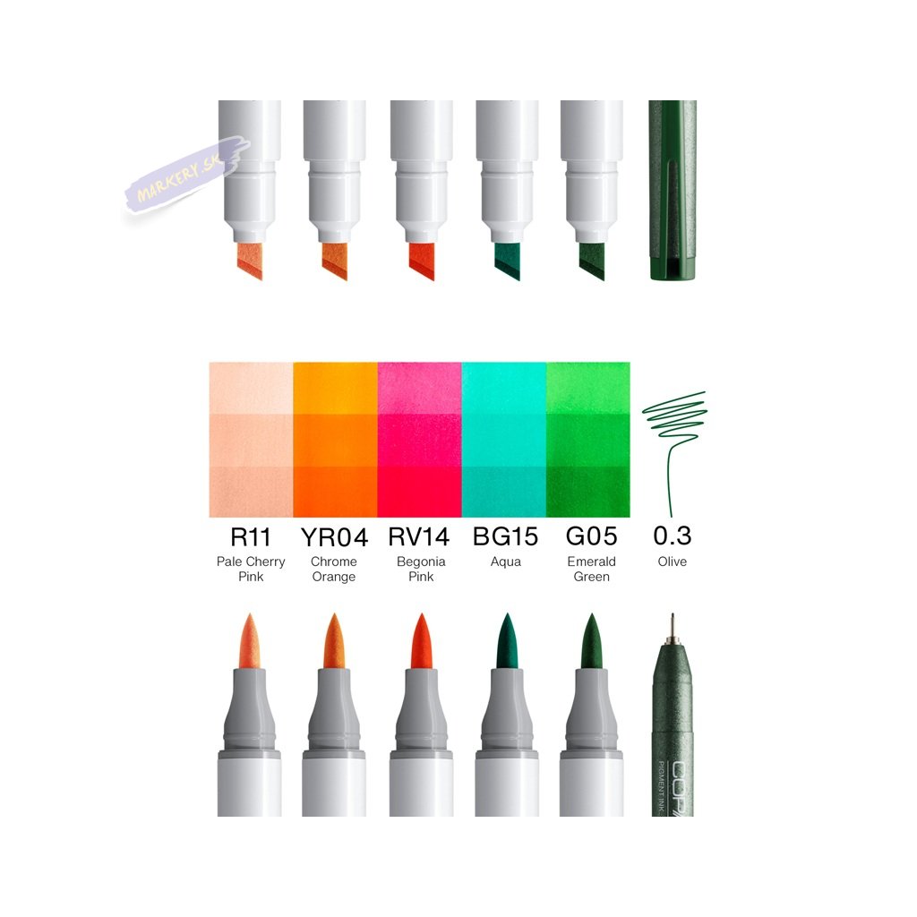 Liehové fixky COPIC Ciao obojstranné Brush & Chisel 5+1ks, Manga Nami
