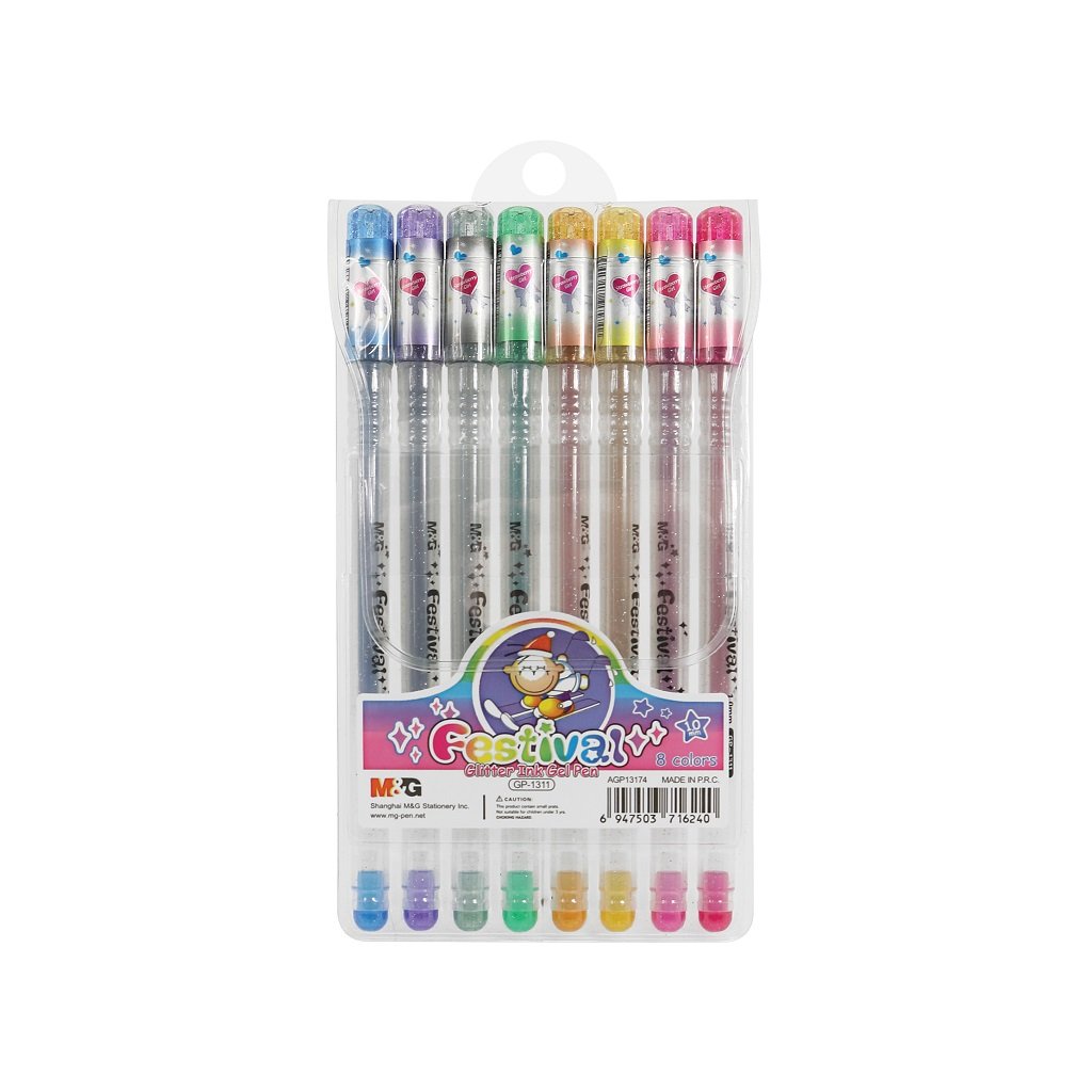 Gélové perá M&G trblietavé, 8 ks