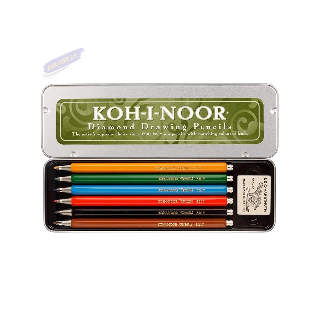Mechanická ceruzka KOH-I-NOOR 5217 Versatilka 2,0mm farebná, 6ks a guma v kovovej krabičke