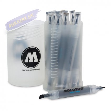 Obojstranný popisovač MOLOTOW Aqua Twin s atramentom na vodnej báze má z jednej strany tenký štetcový hrot az druhej strany šikmý hrot 2-6mm. Pomocou doplňovacích atramentov Aqua Ink je možné namiešať nespočet farebných odtieňov - perfektné pre všetky grafické designy, akvarelové a graffiti aplikácie. Kombinácia s fixkou Aqua Blender Pro umožňuje dlhodobé uchovanie farebných odtieňov bez straty kvality. Vďaka potravinárskym farbivám je atrament na báze vody schválený aj pre deti.
