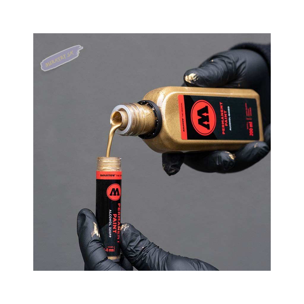 Alkoholový atrament Permanent Paint Refill je vysoko krycí permanentný atrament na dopĺňanie liehových popisovačov alebo dripstickov. Okrem plných intenzívnych farieb dopĺňajú rad aj metalické farby.