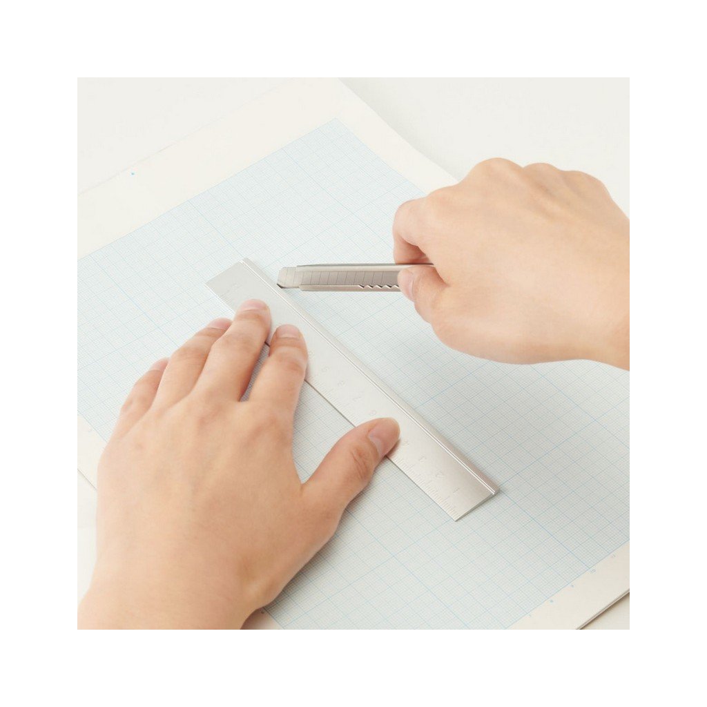 Vysoko kvalitné Japonské pravítko MUJI s gravírovanou stupnicou, ktorá sa ani po dlhom používaní neodrie. Pevný hliníkový materiál vhodný na použitie aj ako rezačka.