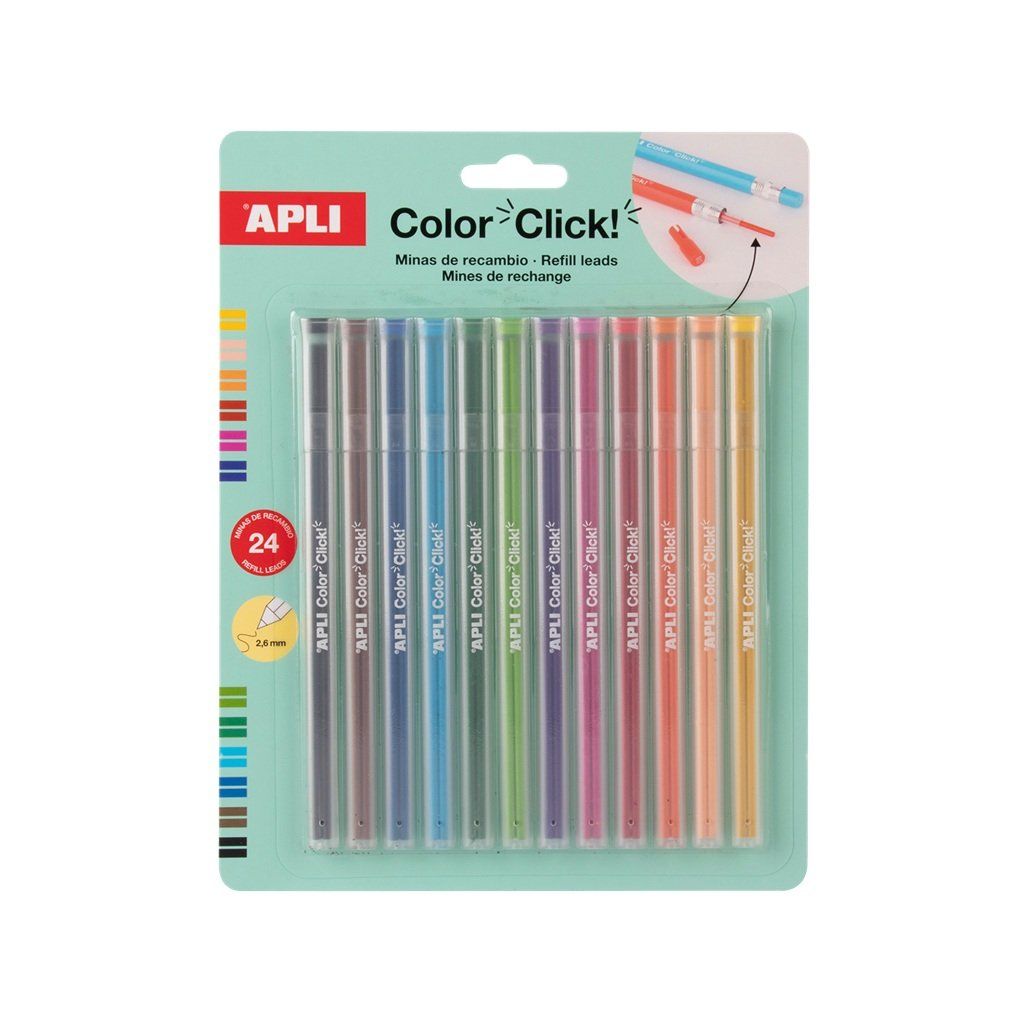 Náhradné tuhy do mechanickej pastelky APLI Color Click, 24 ks
