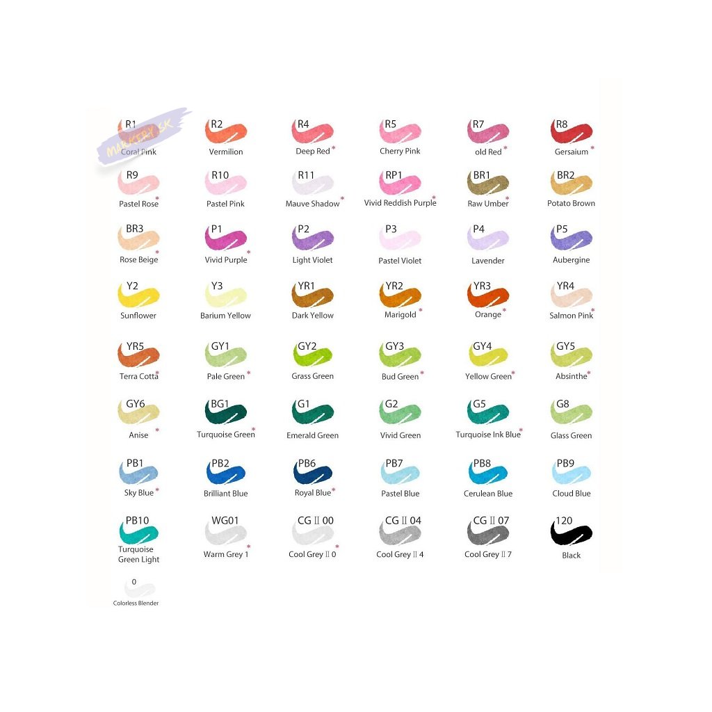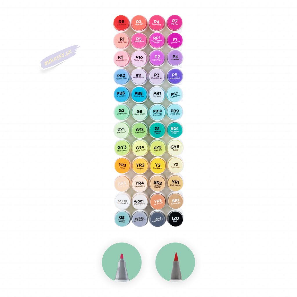 Obojstranné popisovače OHUHU na báze alkoholu s tenkým pevným hrotom na jednej strane a štetcovým hrotom na strane druhej.