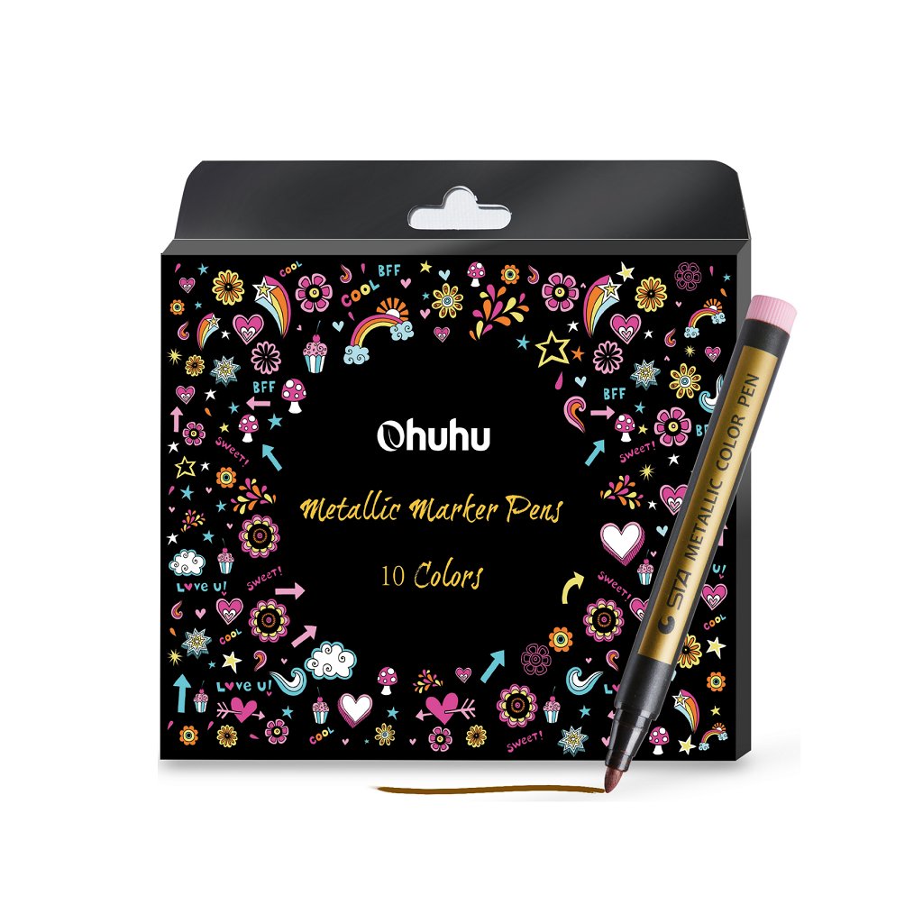 S kreatívnymi metalickými fixkami OHUHU vnesiete do svojich výtvorov množstvo farieb a lesku. Fixy majú žiarivý a trblietavý pigmentový atrament, s ktorým môžete kresliť, farbiť alebo písať na širokú škálu povrchov a všestranne tvoriť. Napríklad ďakovné priania, priania k narodeninám, vianočné priania, hrnčeky, sklo, kamene, fotoalbumy, zápisníky, kov, drevo alebo iné svetlé a tmavé povrchy.
