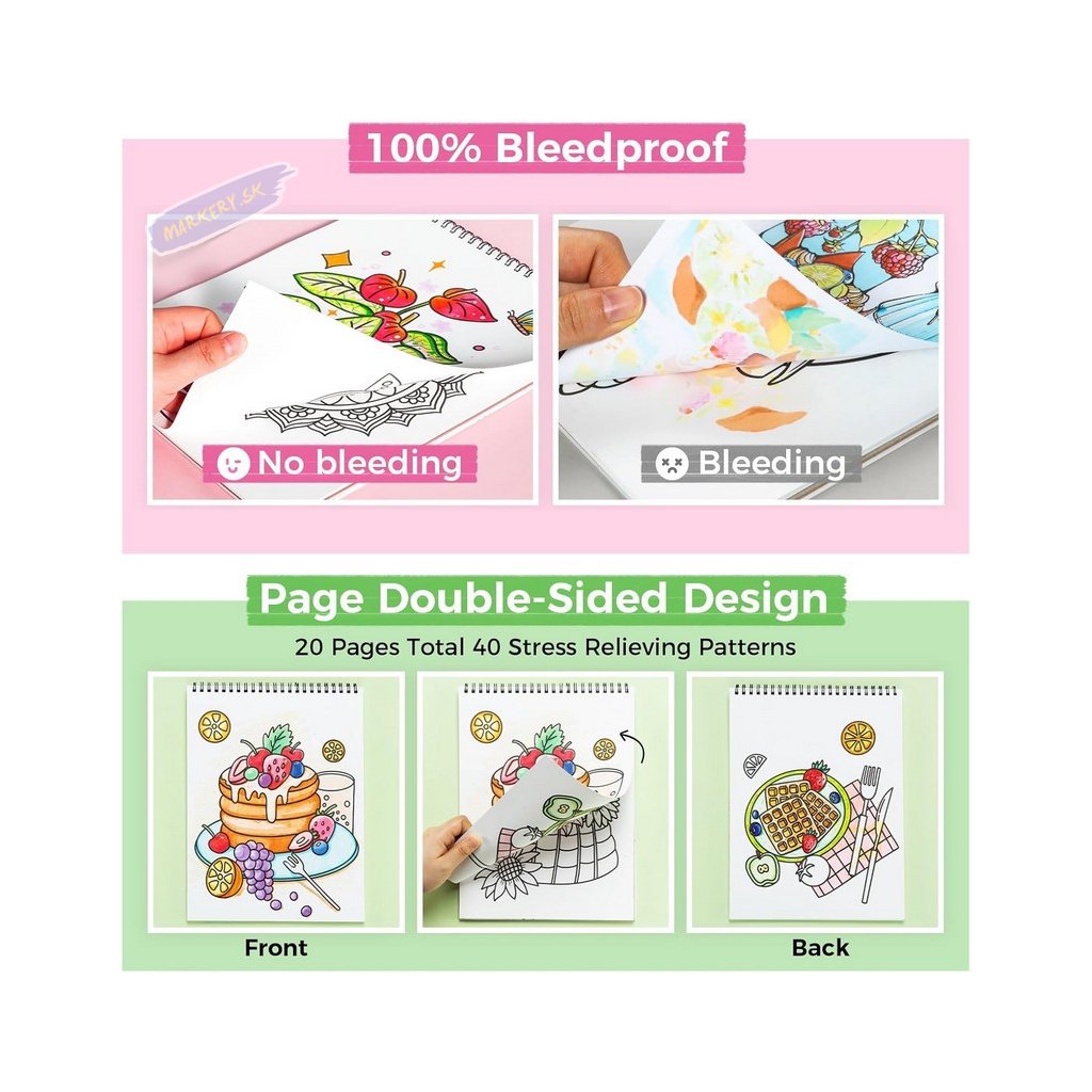 Obojstranné nepriepustné omaľovánky OHUHU so 40 rôznymi motívmi na vymaľovanie pre úľavu od stresu. Praktický register poskytne ukážku všetkých vzorov, takže si ľahko vyberiete ďalšiu stránku podľa nálady alebo si vopred naplánujete farebnú schému pre plynulejší a zábavnejší tvorivý proces. Vysoko kvalitný kresliaci papier gramáže 260g/m² s certifikáciou FSC. Omaľovánky OHUHU sú odolné a udržateľné, hladký a rovný povrch papiera sa skvele hodí k alkoholovým fixkám značky OHUHU. Aj keď sa doba schnutia atramentu môže mierne líšiť v porovnaní s bežným papierom, tak ani začiatočníci sa nemusia obávať rozpíjania atramentu. Vďaka tučným, jednoduchým líniám tento design minimalizuje zložité detaily, takže vyfarbovanie je bezstresové a relaxačné. Je ideálny pre všetky vekové kategórie a pomáha vám sústrediť sa na zábavu z vyfarbovania bez toho, aby ste sa cítili zahltení drobnými detailmi. Špirálová väzba umožní otáčanie stránok o celých 360 stupňov a kresliť bez problémov z ľubovoľného uhla. Je ideálny pre ľavákov aj pravákov a poskytuje plynulý a pohodlný zážitok. So svojimi rozmermi je táto kniha omaľovánok ideálna pre fotenie a zdieľanie na sociálnych sieťach. Vďaka ľahko odtrhávacím listom môžete svoje umelecké diela rýchlo vybrať a darovať priateľom, zarámovať ich ako dekoráciu alebo si jednoducho užiť výnimočné okamihy, ktoré ste vytvorili.