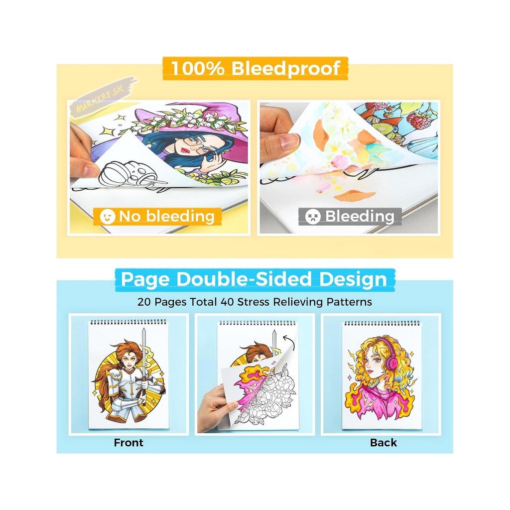 Obojstranné nepriepustné omaľovánky OHUHU so 40 rôznymi motívmi na vymaľovanie pre úľavu od stresu. Praktický register poskytne ukážku všetkých vzorov, takže si ľahko vyberiete ďalšiu stránku podľa nálady alebo si vopred naplánujete farebnú schému pre plynulejší a zábavnejší tvorivý proces. Vysoko kvalitný kresliaci papier gramáže 260g/m² s certifikáciou FSC. Omaľovánky OHUHU sú odolné a udržateľné, hladký a rovný povrch papiera sa skvele hodí k alkoholovým fixkám značky OHUHU. Aj keď sa doba schnutia atramentu môže mierne líšiť v porovnaní s bežným papierom, tak ani začiatočníci sa nemusia obávať rozpíjania atramentu. Vďaka tučným, jednoduchým líniám tento design minimalizuje zložité detaily, takže vyfarbovanie je bezstresové a relaxačné. Je ideálny pre všetky vekové kategórie a pomáha vám sústrediť sa na zábavu z vyfarbovania bez toho, aby ste sa cítili zahltení drobnými detailmi. Špirálová väzba umožní otáčanie stránok o celých 360 stupňov a kresliť bez problémov z ľubovoľného uhla. Je ideálny pre ľavákov aj pravákov a poskytuje plynulý a pohodlný zážitok. So svojimi rozmermi je táto kniha omaľovánok ideálna pre fotenie a zdieľanie na sociálnych sieťach. Vďaka ľahko odtrhávacím listom môžete svoje umelecké diela rýchlo vybrať a darovať priateľom, zarámovať ich ako dekoráciu alebo si jednoducho užiť výnimočné okamihy, ktoré ste vytvorili.