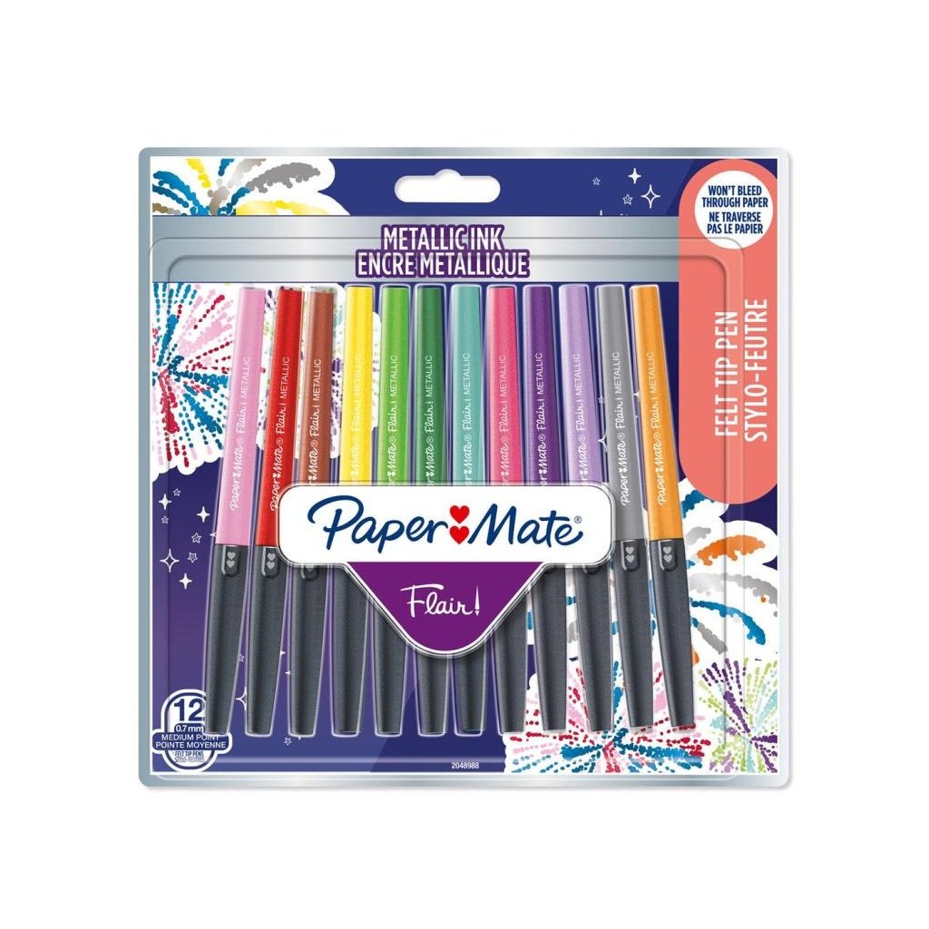 Fixky PAPER MATE Flair Medium, 12 ks Metallic