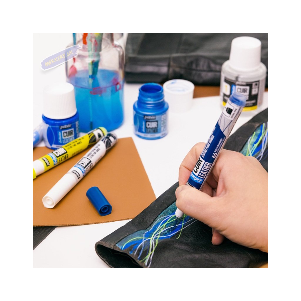 PEBEO Setacolor Leather je určený pre jemné detaily, nápisy a dokončovacie práce na koži. Či už chcete oživiť starú koženú bundu, dodať šmrnc koženej taške alebo ste jednoducho len nadšenci do techniky maľovania na koži, máme pre vás ideálneho pomocníka.Fixy sa jednoducho používajú a zakaždým poskytujú vynikajúce výsledky.Popisovač s extra jemným hrotom umožňuje kresliť presné a precízne línie a čiary a je vhodný pre všetky druhy kože vrátane hladkej kože, semišu a syntetickej kože. Atrament použitý v značkovači je rýchloschnúci, vodeodolný a odolný proti vyblednutiu, takže vaše umelecké diela vydržia dlho bez poškodenia.